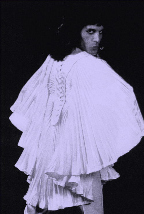 Один из самых иконических образов молодого Меркьюри — белый плиссированный костюм авторства дизайнера Зандры Роудс, в котором певец впервые выступил на сцене в марте 1974 года, открывая концерты тура Queen II.